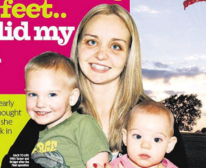 2005年10月9日,時年21歲的美國姑娘莎娜·里查森在阿肯色州高空跳傘時,因主副降落傘都無法打開,她就像秤砣一樣從3000多米高空墜落地面。臉先著地的莎娜奇跡般地沒有摔死,就連腹中2周大的胎兒也安然無恙!孩子安然出生后6周,莎娜便重返藍天再次跳傘。3年后,莎娜又增添了一個寶寶,并于去年12月通過第6次整容手術重獲了“新臉”。