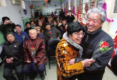 “親愛的,感謝你!”昨天下午,東城區(qū)史家社區(qū)居委會內(nèi),近20對年近古稀的老夫妻聚在一起,其中4對已過金婚。他們學(xué)習(xí)牽手、擁抱、送玫瑰,“惡補”情人節(jié)知識。相濡以沫的老夫妻們,第一次嘗試開口向?qū)Ψ酱舐曊f愛,雙方都不好意思地扭過頭,現(xiàn)場一片掌聲。