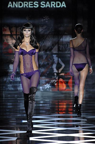 2月23日,在西班牙首都馬德里舉行的時裝周上,模特展示西班牙設計師安德烈斯·薩爾達的時裝作品。當日,在2009/2010秋冬時裝流行趨勢展上,安德烈斯·薩爾達的新款內衣作品展現了女性的感性與誘惑,打造出被神秘光環包圍中驚艷、性感而狂野的女性形象。 新華社記者陳海通攝