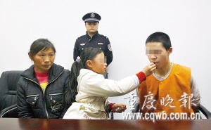 因?yàn)榕c人結(jié)伙搶劫,昨日上午10時(shí)50分,15歲少年王言在渝中區(qū)法院少年法庭受審。王言11歲的妹妹從100多公里外的老家趕到法院,給哥哥送來兩顆糖。