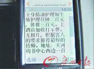記者試著撥通了其中一間名為廣州某男士SPA會所的電話,他們主要提供“一條龍”上門服務(wù),廣州地區(qū)內(nèi)加收來回車費(fèi),服務(wù)人員稱,他們是廣州所有同行里面做得最專業(yè)和時(shí)間最長的店鋪。