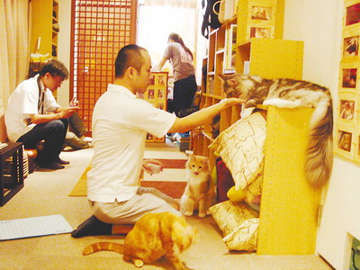 日本人愛貓是眾所周知的,不僅機(jī)器貓當(dāng)上了文化大使,就連歌山縣的一個無人售票火車站的站長也由小貓來擔(dān)當(dāng)。如今,東京風(fēng)靡以貓咪為主題的咖啡館,里面除了服務(wù)員之外,還有可愛的貓咪為您服務(wù)。出于好奇,《環(huán)球時報》記者前去東京秋葉原的一家貓咪咖啡館探訪。