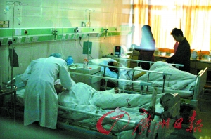 據太平人民醫院耳鼻咽喉——頭頸外科主任陳偉南介紹,陳某與張某兩人送到醫院時均處于貧血、休克狀態。8位醫務人員全力將他們搶救過來。兩人傷在喉嚨,傷口都有15厘米長,現在暫未脫離生命危險。(記者劉滿元攝影報道)