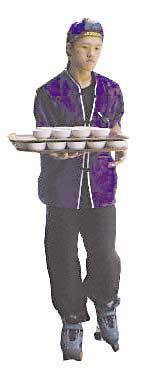 飯店在前臺還提供一個彩頁介紹,上面說飯店每天能供應2萬份菜,最多時每天要進1萬多種活海鮮和水果、3.5噸大米、2.5噸肉和2噸蔬菜。最快時,每小時就能做出3000盤菜來。飯店共有2.45萬個盤子,刀叉1.7萬副,僅廚房面積就有740平方米。人們一般來這里用餐都會說成是吃“豪華溜冰餐”,因為飯店面積大,送菜的服務員都穿著溜冰鞋,在連接25個各具特色的大小餐廳間的回廊里穿梭。