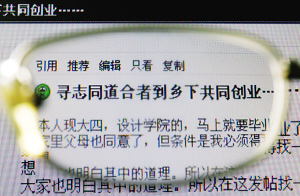 “但會有愿意去鄉下的女孩么?”“OXY-001”在BBS上發帖《尋志同道合者到下鄉共同創業》。“OXY-001”在帖子里說:“你要是夢想著找一帥哥就別來了,你要想找一錢包就別見了!你要真是一仙女我也接不住,沒期待您長得跟畫報封面一樣,能做賢妻良兒媳,外表時尚,內心保守,身心都健康的一般人就行,要是多少還有點婉約那就更靠譜了!”