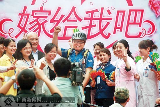 昨日(4月16日)上午,一名“全副武裝”的戶外騎行者出現(xiàn)在廣西柳州市解放南路步行街上,吸引了市民們好奇的目光。他就是柳州登山女將孫延輝的男朋友鄧宇,他將騎自行車進(jìn)藏向攀登珠峰的女友求婚,并打算在珠峰腳下舉行婚禮。
