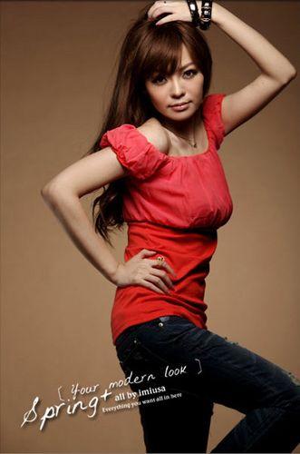 熱艷火熱的紅色,加上領(lǐng)口褶皺感的設(shè)計。不風(fēng)韻的女生還怕沒有自信可言嗎?褶皺感設(shè)計的領(lǐng)口設(shè)計實在是讓忍不住誘惑!覺得臀部的有點肉肉的MM可以選用較長的T恤遮住臀部!可是又顯得曲線十足!