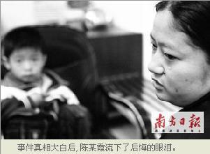 昨日(5月18日),在石龍公安分局探訪室,為爭(zhēng)奪撫養(yǎng)權(quán),精心策劃炮制兒子被拐賣(mài)案的陳某霞,流下了后悔的淚水。2006年11月3日晚8時(shí)許,陳某霞報(bào)案稱(chēng),其3歲半的兒子周某龍買(mǎi)東西時(shí)失蹤,懷疑被人拐賣(mài)。石龍警方迅速成立專(zhuān)案組,開(kāi)展了長(zhǎng)達(dá)2年半的偵查。今年5月16日,石龍分局“打拐”專(zhuān)業(yè)隊(duì)連續(xù)奮戰(zhàn)22小時(shí),成功破獲了這起拐騙兒童案,解救兒童1名,抓獲涉案人員2名,宣告了“打拐”專(zhuān)項(xiàng)行動(dòng)首戰(zhàn)告捷。