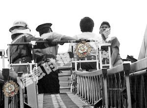 上午11時(shí)15分,男子終于被勸服,并由云梯接下,隨后被警方帶走調(diào)查。 (記者 熊栩帆)