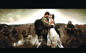 灰暗的天空下,身穿潔白婚紗的新娘與新郎緊緊相擁,但他們倆身后卻是硝煙彌漫的戰場,戰士們全副武裝、手持沖鋒槍,表情嚴肅地往前沖。戰爭婚照,只有80后敢把戰爭、血腥、悲劇和婚紗聯系在一起。80后生長在網絡信息時代,他們總能從網上獲取最新的信息,從而向攝影師提出各種各樣的要求。“所以我們也要不斷創新,緊跟著潮流走,才能滿足消費者的需求。”今生有約的經理王軍告訴記者。