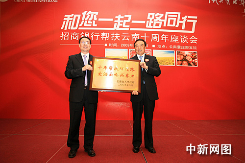 中新網6月24日電 昨日,招商銀行幫扶云南十周年座談會在云南昆明召開。云南省副省長曹建方、國務院扶貧辦國際合作與社會扶貧司司長張磊、國務院扶貧辦國際合作與社會扶貧司副司長劉春良、招商銀行行長馬蔚華等領導應邀出席了座談會。