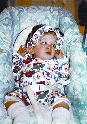 到如今,其他16歲的同齡女孩都已上學,和男友約會,然而16歲的布魯克卻仍然生活在搖籃中,不會講話,不會走路。除了容貌像嬰兒外,布魯克的智力也停留在了嬰兒狀態。