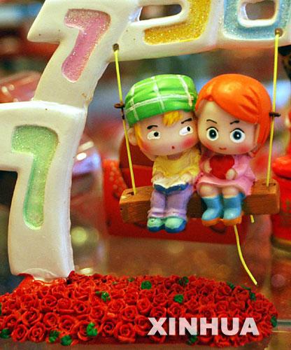 7月24日在蘇州一家商店拍攝的具有民族特色的情侶玩偶。