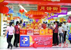 中秋將近,超市里擺滿了各式各樣的月餅。 記者石忠情攝