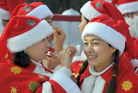韓國龍仁市主題公園“愛寶樂園”滑冰場(chǎng)的圣誕美女。