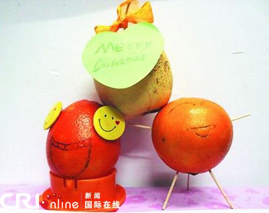 “綠色圣誕”的主要倡議就是把以往圣誕節(jié)里傳遞的紙質(zhì)賀卡,變成新鮮又環(huán)保的“水果賀卡”,就是把送賀卡改為送水果。中國(guó)政法大學(xué)大二年級(jí)的小姍說(shuō),一張普通的賀卡,要消耗10克優(yōu)質(zhì)紙張,如果有1000萬(wàn)人每人寄一張賀卡,就要砍掉近3000棵十年生的樹(shù)木。而親手制作的水果賀卡,既傳遞了朋友之間的問(wèn)候,也體現(xiàn)了大家對(duì)低碳生活的追求。