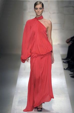 玫紅色的亮麗一下子扎入我們的眼睛,柔滑的絲緞和嵌亮絲的面料互相纏繞交錯,不同的光澤質感豐富了視覺。再加上斜肩的吊帶、80年代風格的Body-con捆綁設計,以及前短后長露出修長雙腿的裙擺,都讓這款長裙成為本季最佳性感之選。