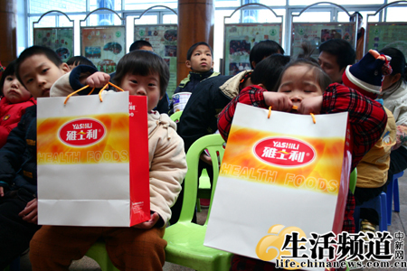 自15日傍晚開始,合肥市就飄起了雪花,隨著氣溫的逐步下降,雪越飄越大,到了16日晚上,整個合肥市包裹在一片銀裝素裹之中。2009年合肥的第一場雪,比以往來得更早、更大一些,但是紛紛飄落的雪花并沒有擋住溫暖的腳步。“愛心雅士利 溫暖中華行”千萬陽光工程全國公益捐贈活動于17日走進安徽合肥,走進合肥兒童福利院,走進在這寒冬之中最急需幫助的人群心中。