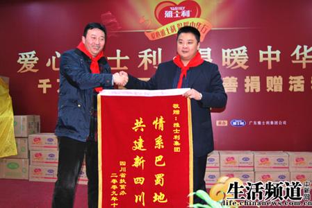 隨后,雅士利愛心小組來到“愛心雅士利•溫暖中華行”四川省捐贈儀式現(xiàn)場。儀式由蓬溪縣委常委、縣委組織部長張智勇主持,四川省扶貧辦社會扶貧處處長楊邦華、遂寧市扶貧辦主任戴見明、蓬溪縣人大常委會副主任吳岳寧、蓬溪縣人民政府副縣長廖理、楊文彬及廣安市廣安區(qū)商務(wù)局局長張自勇、廣安市廣安區(qū)扶貧辦副主任肖開武等地方領(lǐng)導(dǎo)和《中國扶貧》雜志社常務(wù)副社長郭金之等一行出席了現(xiàn)場!端拇ㄈ請蟆贰⑺鞂庪娨暸_、《遂寧日報》、蓬溪電視臺、《蓬溪周刊》等媒體記者一起見證捐贈過程。