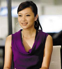 片中徐靜蕾一身亮紫色無袖堆領上衣搭配幾何形狀耳環(huán),顯得柔媚中不失干練,烘托出一種高貴典雅又富有親和力的氣質(zhì)。