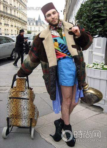 濟(jì)公+妖男+流浪漢style的美妙融合!別看他乍一眼好像穿得很隨便很破爛,這一身一點也不便宜的,Stella McCarthy的女裝(注意是女裝!)無跟鞋(沒記錯的話),還有那虎皮包應(yīng)該都價值不菲!
