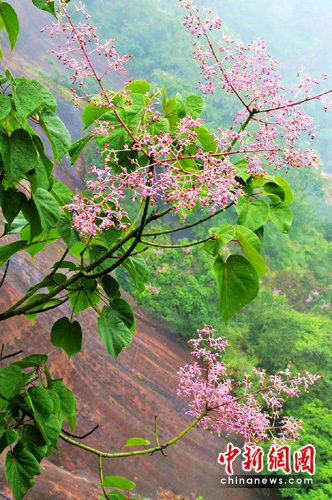 據了解,丹霞梧桐是丹霞山特有物種,主要分布在巖壁及山谷的淺土層中,多有小石積、金針花、還魂草、石蒜等傍生植物,開花期為每年的5月至6月。