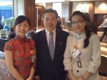 她們的熱情服務很快就吸引了中國代表團成員以及中國駐美使館官員們的注意。使館官員對她們的服務非常滿意,專程代表周文重大使對她們不辭勞苦的志愿服務表示感謝。中國駐紐約總領事彭加玉還專門駐足在展臺前,與她們親切交談,并與她們合影留念。在得知這些志愿者沒有飯吃的消息后,使館官員還自掏腰包,解決了幾位志愿者的飲食問題。這樣,中國來的志愿者就成了所有志愿者中最讓人羨慕的一組,因為他們可以享用和G20峰會官員一樣的就餐待遇。