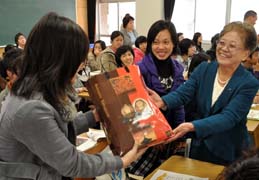 來自中國北京師范大學(xué)、即將在人文科學(xué)研究院留學(xué)的顏淑蘭(24歲)參加贈送儀式后特別感動,滿臉喜悅地表示:“一個(gè)人到異國他鄉(xiāng)求學(xué),心里沒有底,但今天能參加這個(gè)活動,看到日本的人們對我們?nèi)绱岁P(guān)心,自己受到了莫大的鼓勵!(米灝)