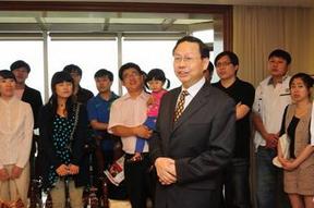 中新網6月17日電 據外交部網站消息,2010年6月12日,駐韓國大使張鑫森和夫人孫敏勤邀請中國留學人員到官邸做客,并為在韓學子舉辦了冷餐會。