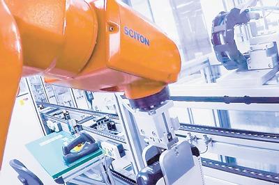 1萬多個不同種類的元器件,“搭乘”無人搬運車,有條不紊地穿梭在218道環環相扣的產線中。“裝配工”“操作工”“協調員”緊密配合,每天可生產150個“大腦”、800多只“眼睛”、300多條“胳膊”,組裝起來的產品——工業機器人,經過“質檢員”把關,就可以出廠了。