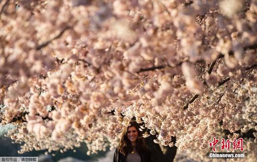 華盛頓潮汐湖畔櫻花盛開粉櫻似雪 游客流連花海
