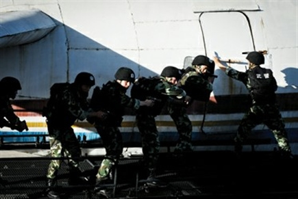 這是武警上?傟犌疤旖M織的一場反劫機模擬演練。據(jù)了解,組建于2002年7月的武警上?傟牼胖ш牱唇贆C中隊,是國內(nèi)第一支武警反劫機中隊,主要擔負江浙滬皖三省一市20個機場的地面反劫機任務以及處置本市其他暴力、恐怖事件。近年來,該總隊積極探索現(xiàn)代條件下駐城市部隊反恐斗爭的特點、規(guī)律,研究相應戰(zhàn)法和戰(zhàn)術(shù)手段,通過設置各種復雜情況下反恐反劫持戰(zhàn)斗預案,開展近似實戰(zhàn)的模擬演練,不斷磨礪尖刀部隊的鋒芒,提高部隊的戰(zhàn)斗能力。組建10年來,反劫機中隊先后27次參加公安、武警組織的反劫機和反恐怖事件演練,全部成功處置,56人立功受獎,被譽為上海武警反恐處突的“拳頭”和“尖刀”。(章樂平 王小磊 劉天 朱斌)