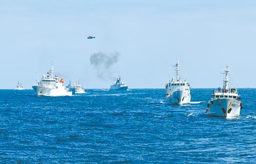 10月19日,中國海監、漁政船只在中國海軍艦艇、飛機的支援掩護下進行航渡。向南攝