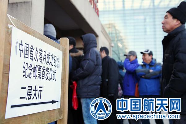 時(shí)間跨入2014年的第一天,早上7點(diǎn),天剛蒙蒙亮,北京天文館還未開門,就已經(jīng)有上百人自發(fā)地在門前排起了長(zhǎng)隊(duì),這些集郵愛好者正等待著購(gòu)買《中國(guó)首次落月成功紀(jì)念》郵票和首日封,并加蓋“月亮郵局”紀(jì)念郵戳,將“第一落”的喜悅分享到五湖四海。