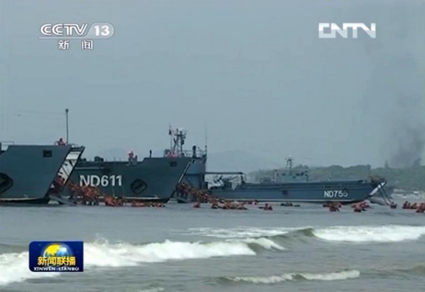 戰士們從兩棲登陸船上跳下迅速占領海灘