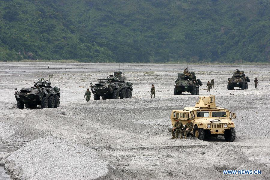美菲兩棲聯合軍演第二天,當天來自美國兩極攻擊艦“好人理查德”號上的約120名美國海軍陸戰隊員和約30名菲律賓海軍陸戰隊員來到了菲律賓塔拉省的烏鴉峽谷,參加直升機突襲項目的演習。