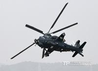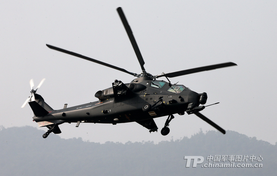 11月13日,我國自主研制生產(chǎn)的武直-10武裝直升機(jī)亮相在珠海舉行的第九屆中國國際航空航天博覽會(huì),在飛行表演中展示了這款直升機(jī)的優(yōu)良性能。記者喬天富 攝(來源:中國軍網(wǎng))