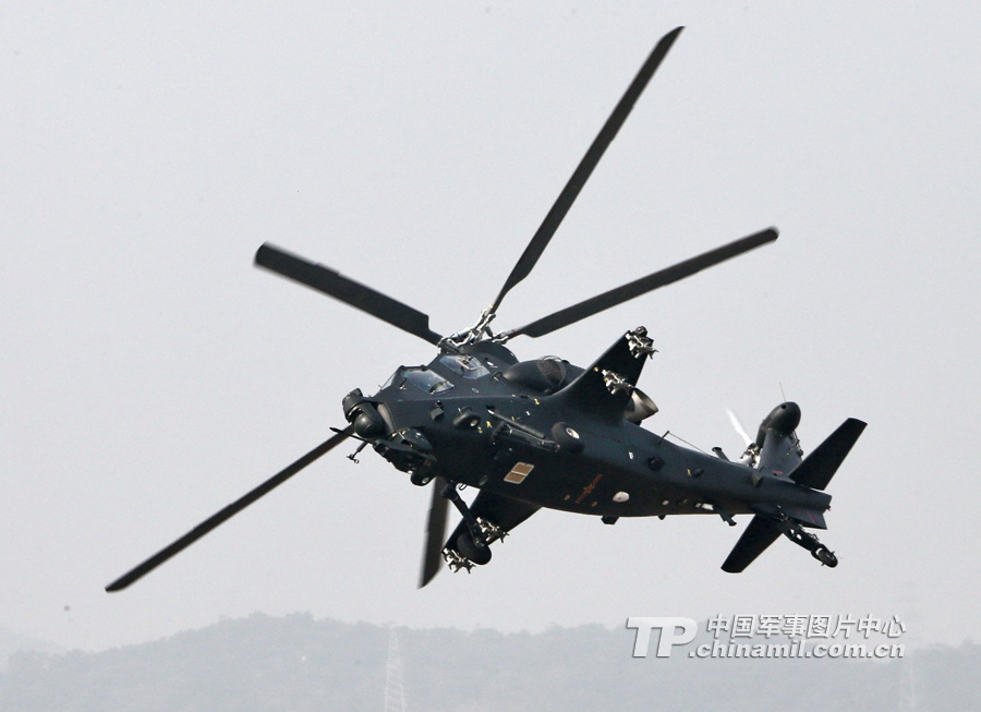 11月13日,我國自主研制生產(chǎn)的武直-10武裝直升機(jī)亮相在珠海舉行的第九屆中國國際航空航天博覽會,飛行表演展示了這款直升機(jī)的優(yōu)良性能。圖為武直-10垂直躍升。記者喬天富攝