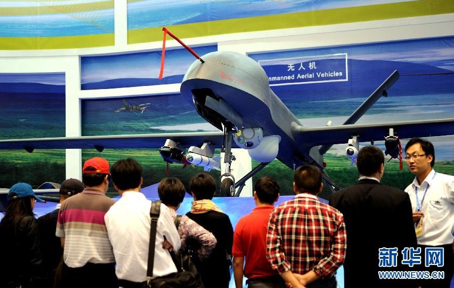 珠海航展上展出的彩虹4(CH-4)無人機系統吸引了眾多觀眾的目光(11月14日攝)。當日,在第九屆中國國際航空航天博覽會上,由中國航天科技集團公司第十一研究院研發的彩虹4(CH-4)無人機系統成為觀眾矚目的焦點。據該院王曉軍副院長介紹,彩虹4無人機翼展達18米,是目前國內掛載能力最強、飛行性能最優的無人機,適合執行邊境巡邏、海島守護、反恐作戰、應急通訊等多種任務,該機型的綜合察打能力已經超越同類型的美國“捕食者”無人機系統。新華社記者 劉大偉 攝
