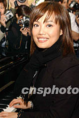 香港著名歌星容祖兒、新秀冠軍吳浩康一月十日在香港為新歌《他都不愛我》MTV拍攝。圖為容祖兒接受記者采訪。錢興強 攝