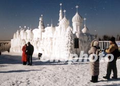 圖:盡顯俄式風(fēng)格的雪雕俄羅斯教堂