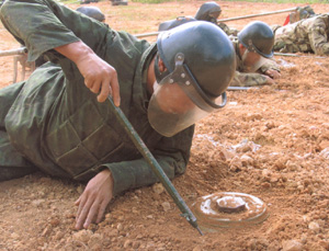 2002年12月31日,中國首次援外指導掃雷的14名專家圓滿完成在厄立特里亞的人道主義掃雷培訓任務后回到北京。這不僅意味著中國的掃雷技術和方法進一步得到了國際社會的肯定,也標志著中國在國際人道主義掃雷援助活動中又邁出新的步伐。解放軍報今天刊文,披露中國進行國際人道主義掃雷援助活動的情況。