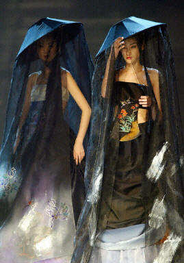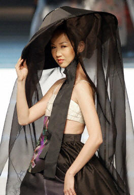 在香港會展中心舉行的“至高韓國流行時裝展”上展示了韓國設計師的具有濃郁韓國特色的藝術作品。