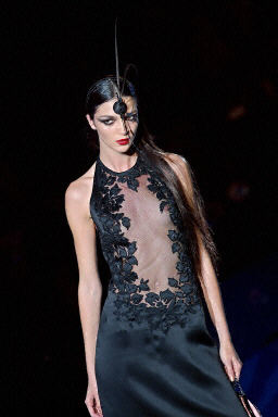 1月20日,時裝模特在巴黎展示2003年新款的春夏時裝。為聲援反艾滋病活動,法國的服裝設計大師Jean-Paul Gaultier和前超級名模Ines de la Fressange將在1月22日舉辦一次慈善晚會,為艾滋病研究和防治募集資金。