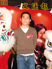 中新網1月24日電 賀歲片《行運超人》昨天在香港舉行首映,梁朝偉偷空從《2046》的拍攝現場趕往出席,不過他為免戲中的造型曝光,先將二撇雞須脫下才出現,他說這次的造型是他自己構思,想給觀眾有不同的感覺。