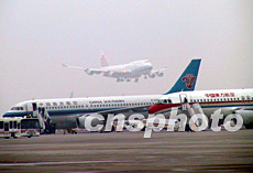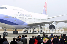 臺灣中華航空公司包機返鄉(xiāng)的客機二十六日清晨飛抵上海浦東機場(2)作者:張宇