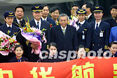 為接送在滬臺(tái)商返鄉(xiāng)過年的臺(tái)灣“華航”首航包機(jī)順利抵達(dá)上海浦東國際機(jī)場后,機(jī)組人員在浦東國際機(jī)場合影。作者:湯彥俊
