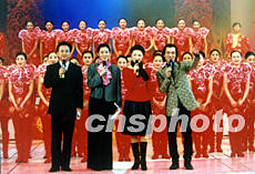 2003年中央電視臺春節聯歡晚會將由朱軍、倪萍、周濤、李詠(從左至右)擔當主持人,同時他們還在多個節目中客串角色。作者:王新