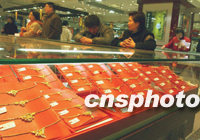 受國際黃金價格連創新高影響,近日,鄭州各商場的黃金首飾價格又攀新高,不少柜臺都標到了每克128元,創出幾年未見的高價格。馬健 攝