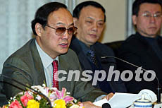 圖為對外經濟貿易合作部副部長安民在會上發言。